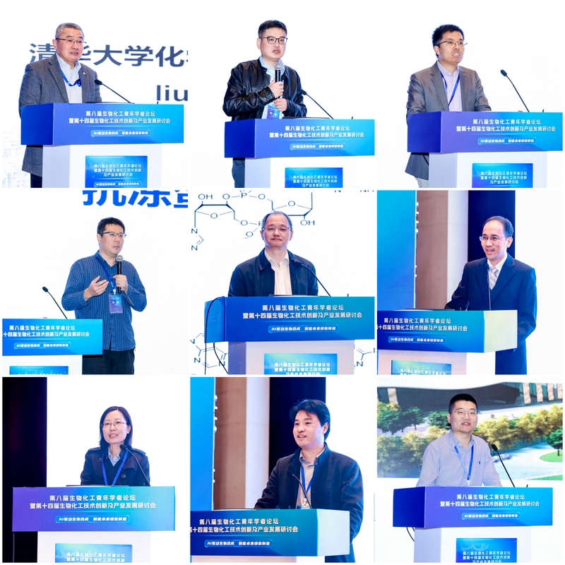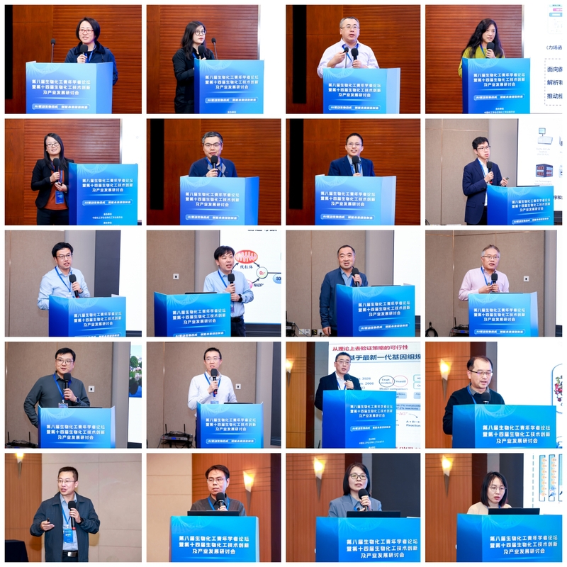 在大会报告环节,9位知名专家分享了各自领域的前沿成果。清华大学的刘铮教授介绍了工业酶创制与酶反应过程强化研究进展;南京工业大学郭凯教授展示了生物基材料工作进展;中国科学院大连化学物理研究所周雍进研究员探讨了多形汉逊酵母细胞工厂设计;天津大学张雷教授分享了抗冻蛋白人工设计及应用;华东理工大学叶邦策教授阐述了第二信使调控及放线菌合成生物学应用;中国科学院分子植物科学卓越创新中心杨晟研究员探讨了大肠杆菌多靶编辑、进化与反向工程;上海交通大学夏小霞教授分享了从介观细胞器到宏观功能材料的蛋白质材料创制;南京理工大学金明杰教授展示了基于糖平台的木质纤维素生物炼制;北京化工大学肖刚副教授介绍了低值复杂原料高效利用与转化的化学/生物协作体系。